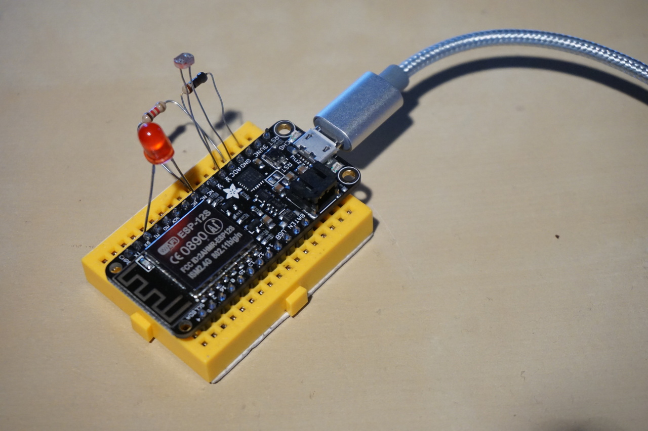 This example is the same, except communication is over wifi using the Adafruit Feather ESP8266. This time we are also sending messages from the Feather to a defined IP, set with the remote_ip variable.