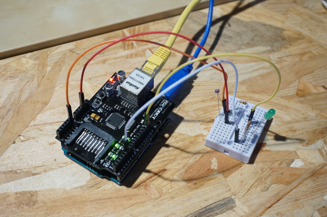 In this example the we can control the state of an LED on the arduino via pure data, and receive values from the LDR light sensor.