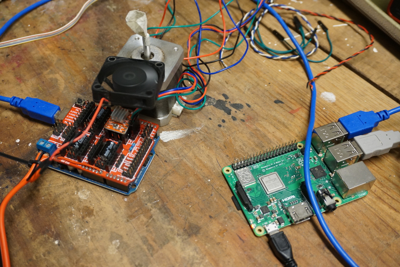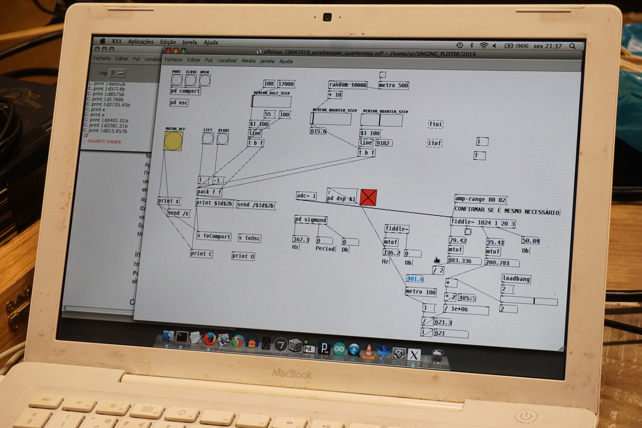 We would like to use this to drive a plotter based on the live sound input captured by microphone, such as voice, or the sounds from the machine itself to create feedback loops. We think it could be interesting to explore the performative use of a drawing machine or the stepper motors of other machines in this way.